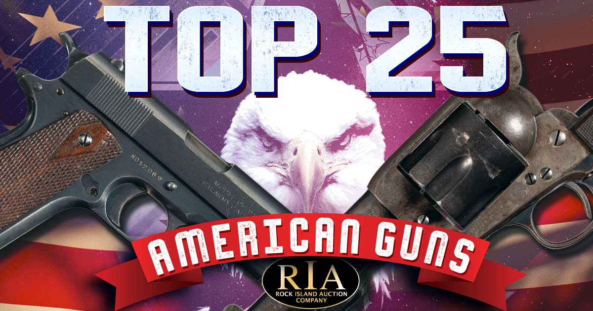 Red, white, and polished blue steel. The 4th of July is a celebration of freedom, and America’s freedom was forged through courage and gunpowder. We’re looking back at the top 25 American guns of all time, and the competition is fierce. Most of the featured firearms are offered in Rock Island Auction Company’s upcoming August Premier Auction, along with a few examples from past events.